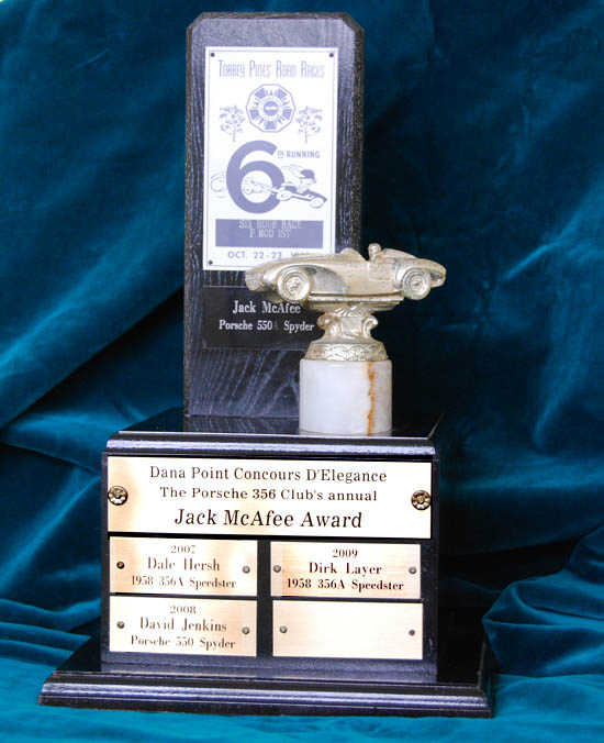 As a tribute to the accomplishments Jack McAfee made in both selling and racing Porsches, the McAfee family and Porsche 356 Club present the "Jack McAfee Award" at the annual Dana Point Concours in California. The award will be given for four years only ending in 2010.